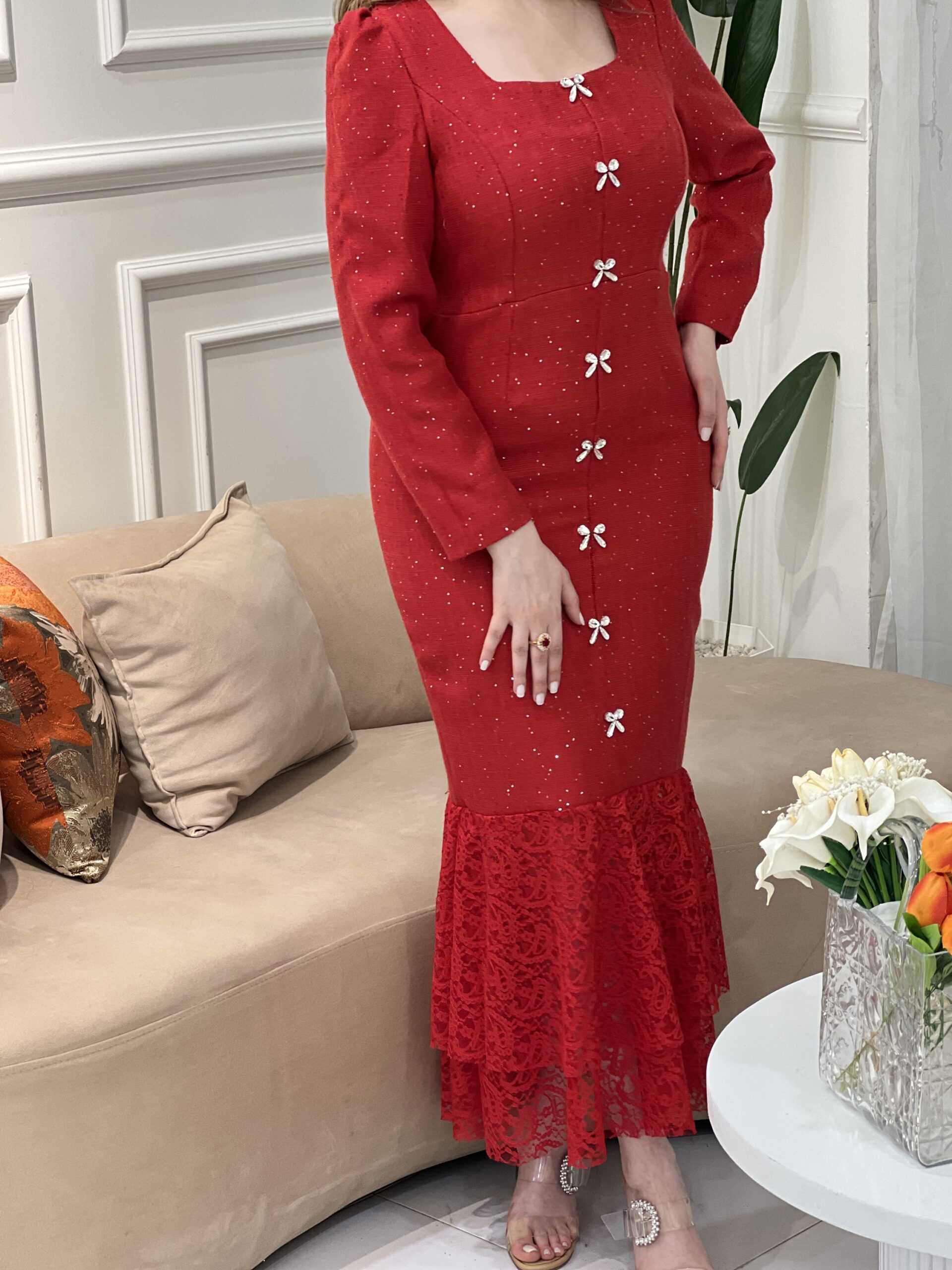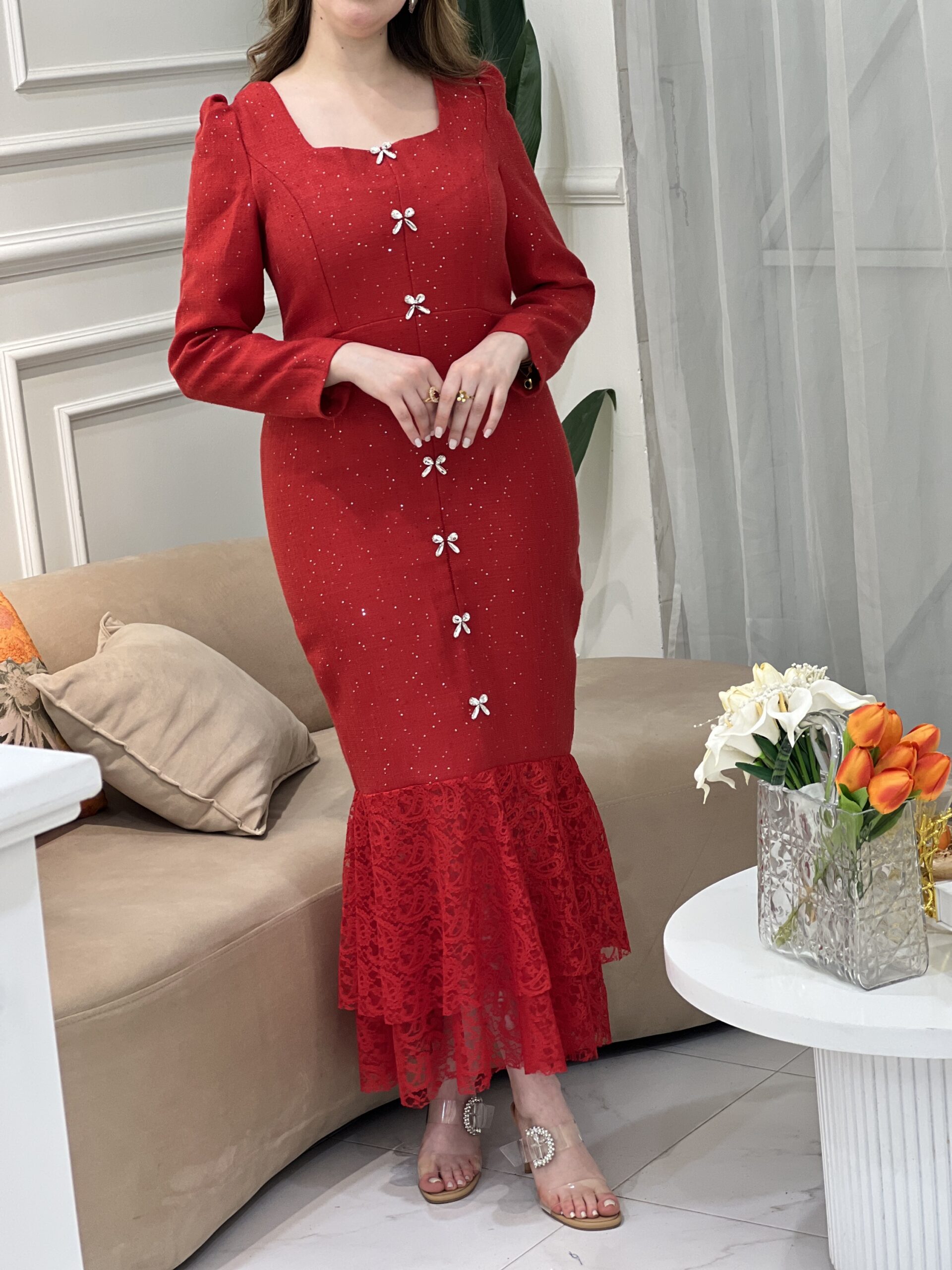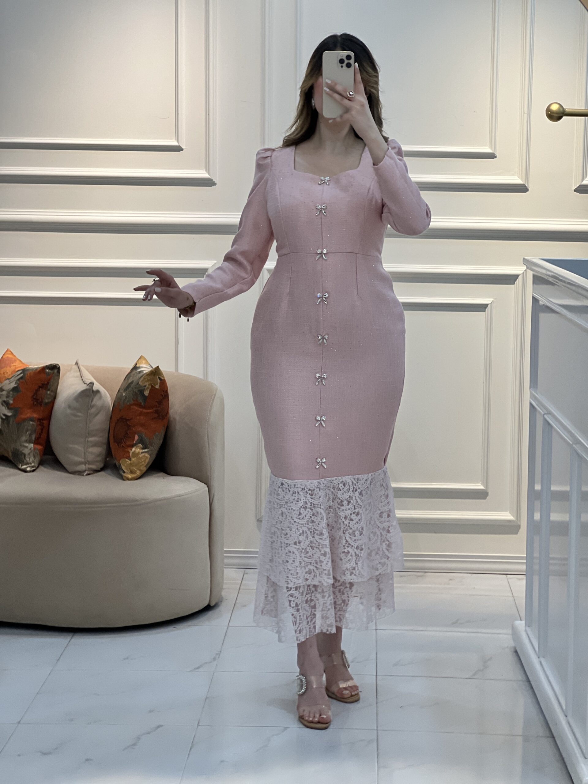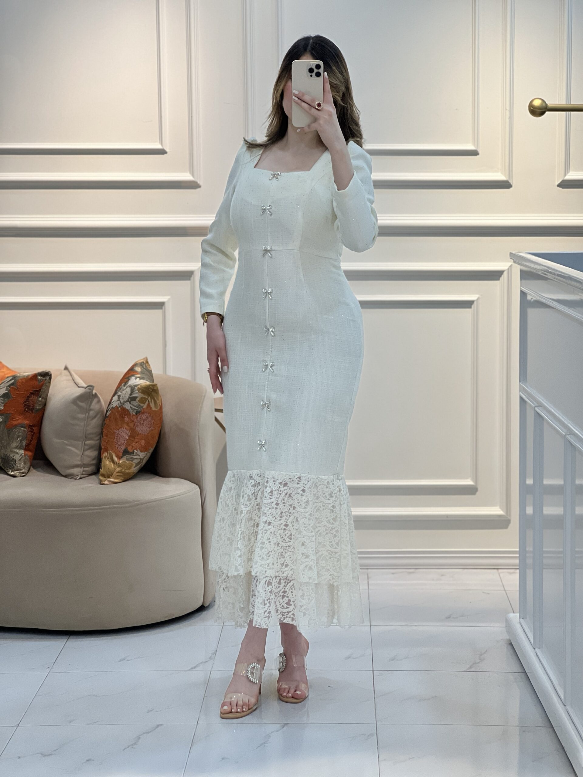 قصة أنثوية راقية، تفاصيل براقة ولمسة دانتيل ناعمة تمنحك حضورًا لا يُنسى ✨