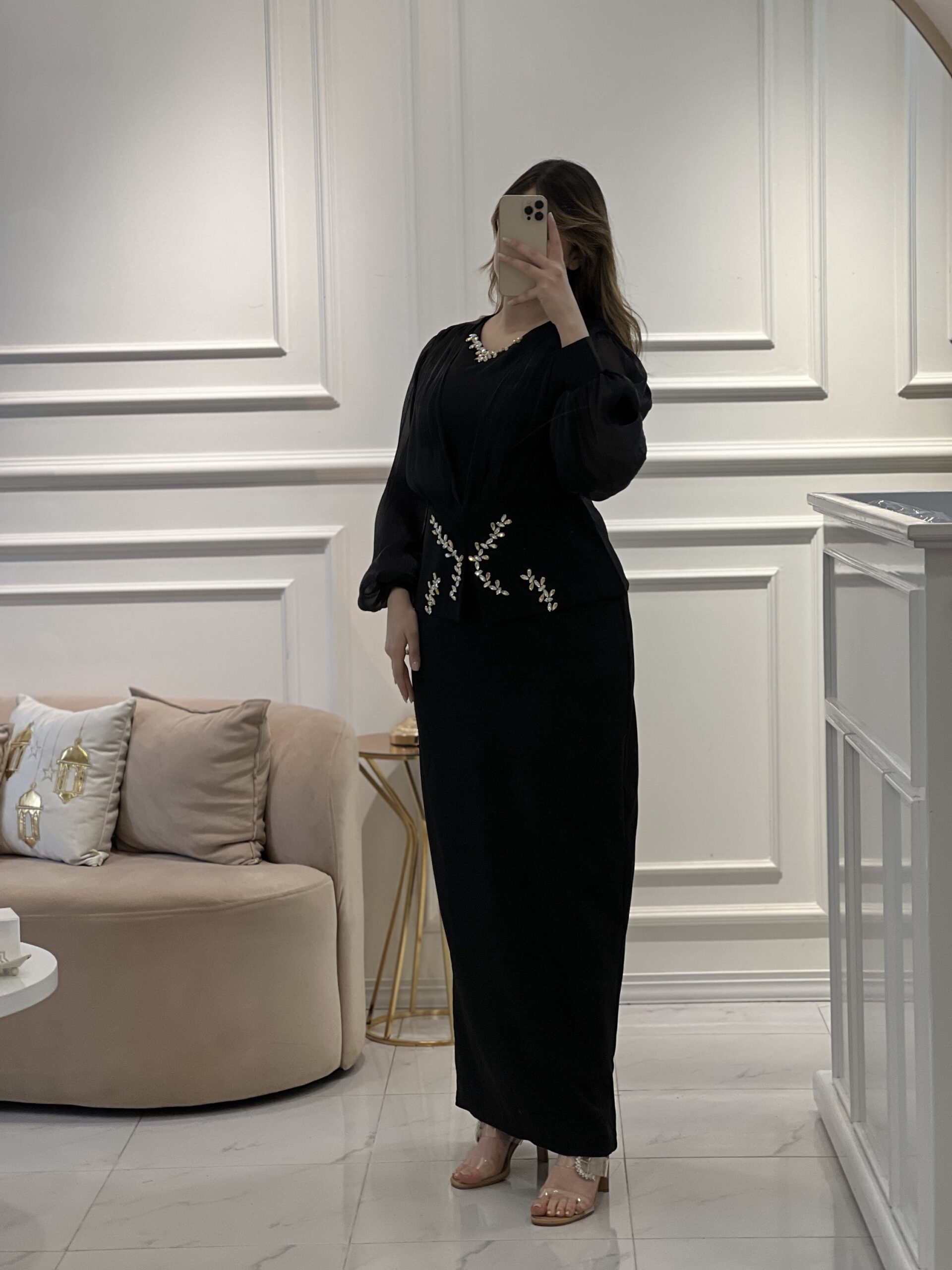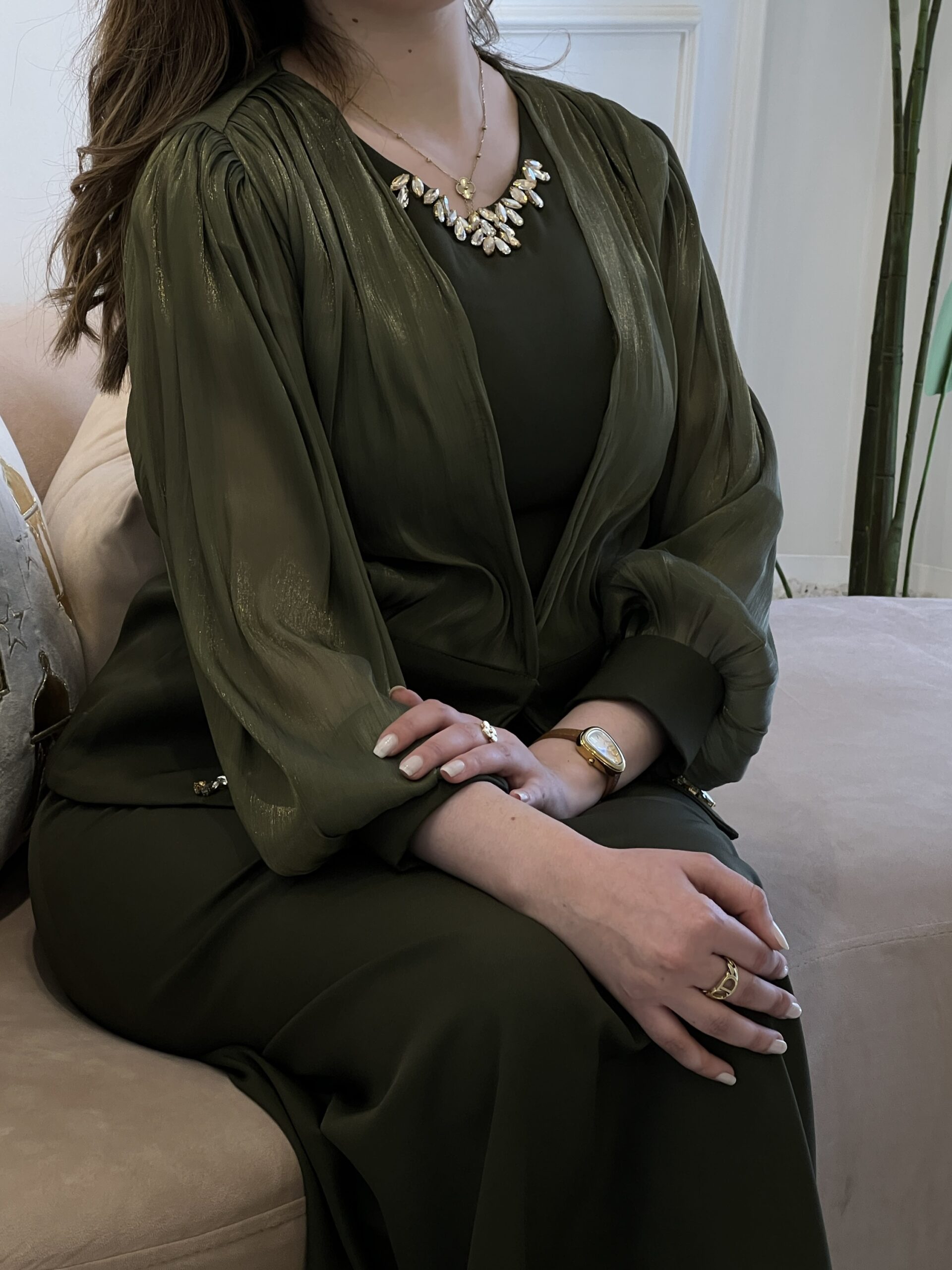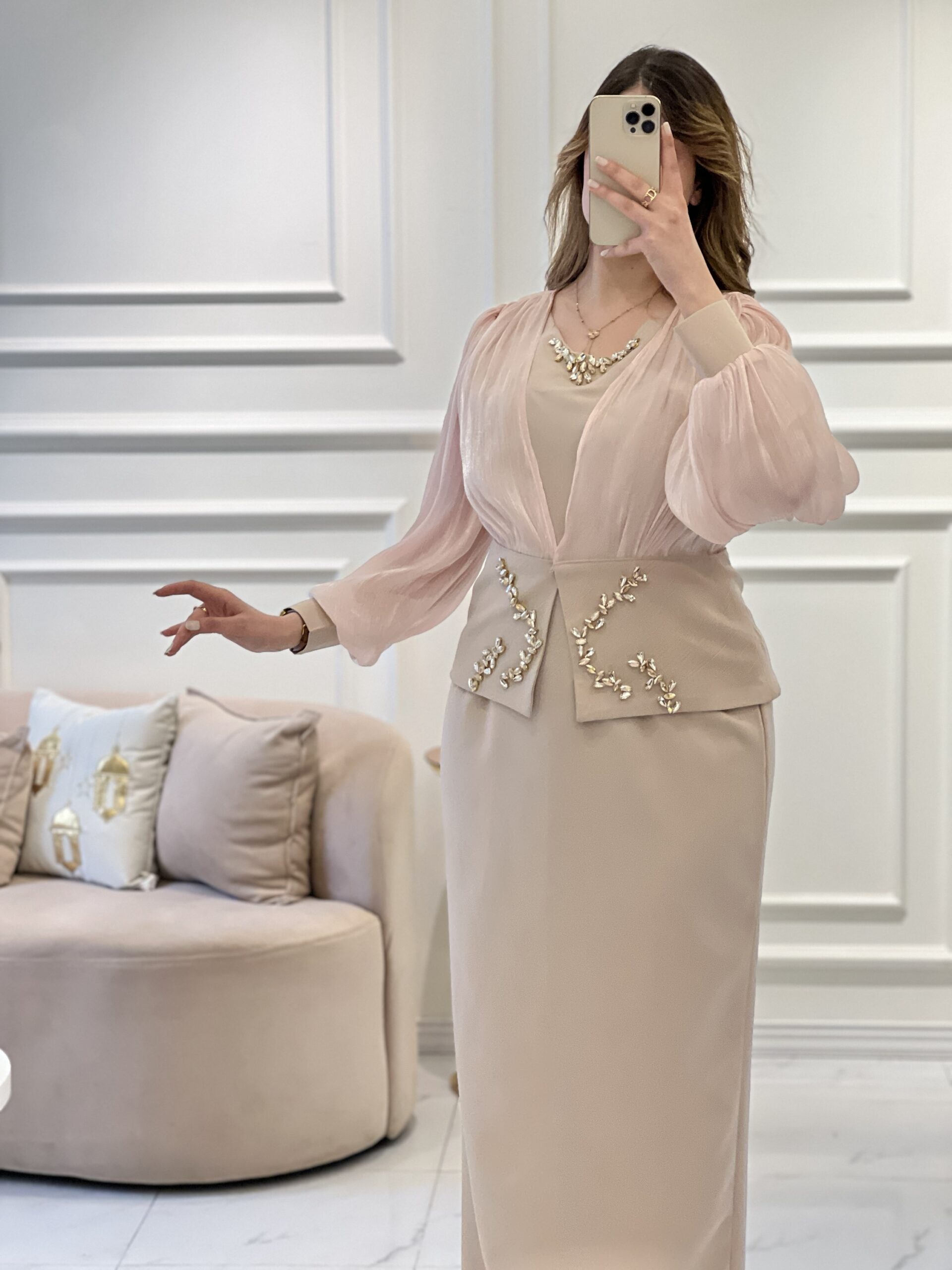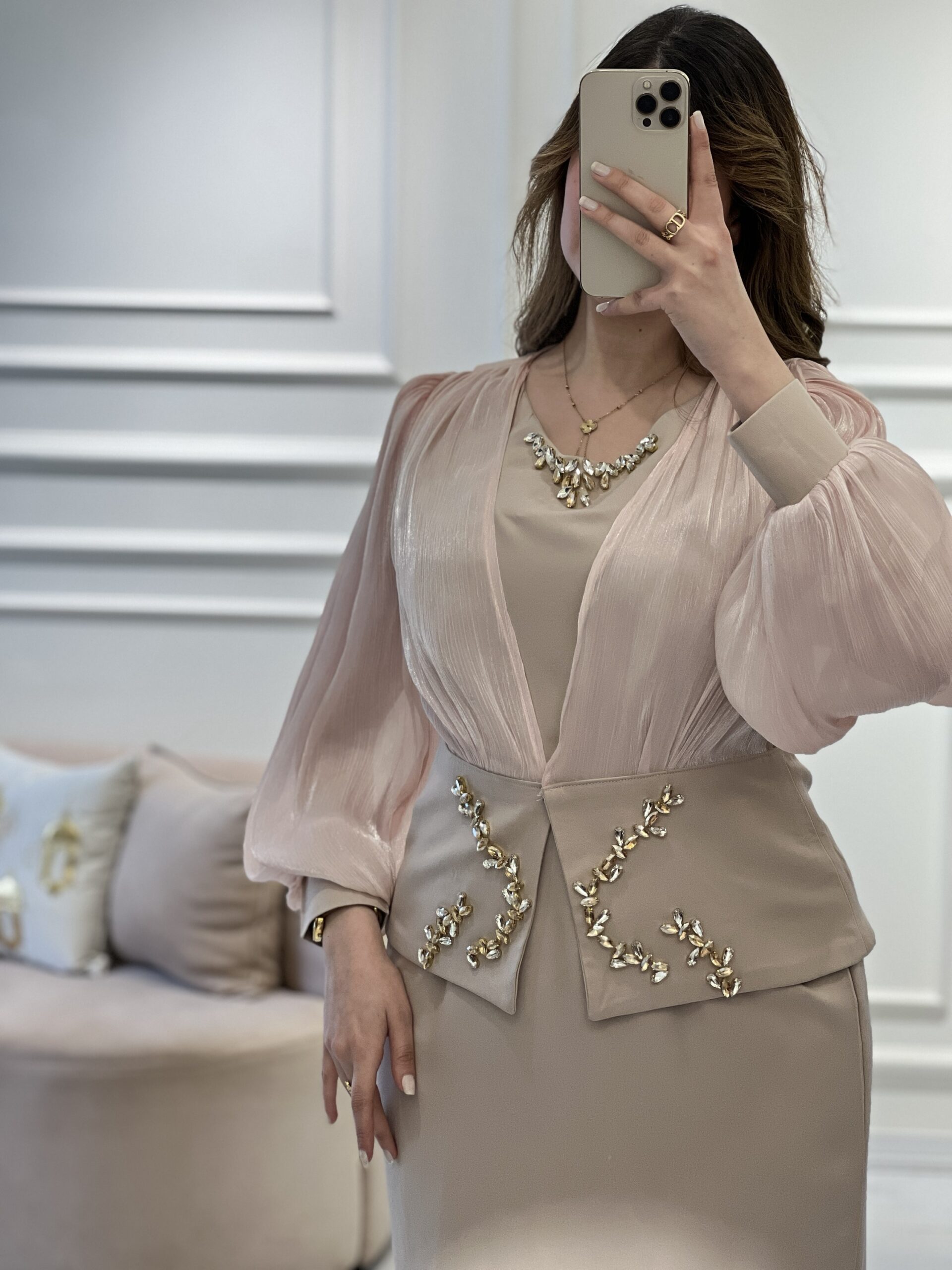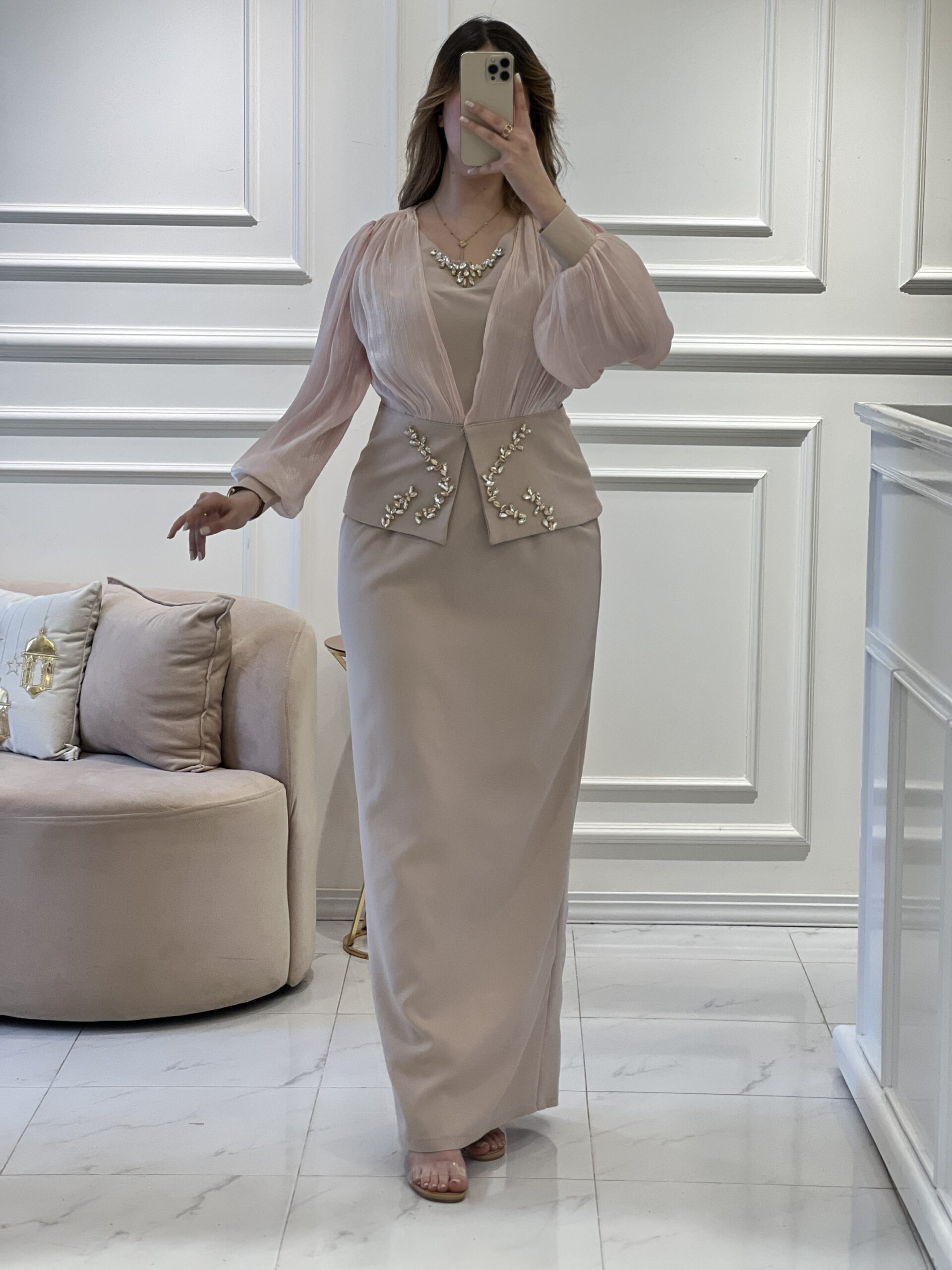 Ensemble deux pièces veste (orgonza plissée) et robe sans manches crepe
